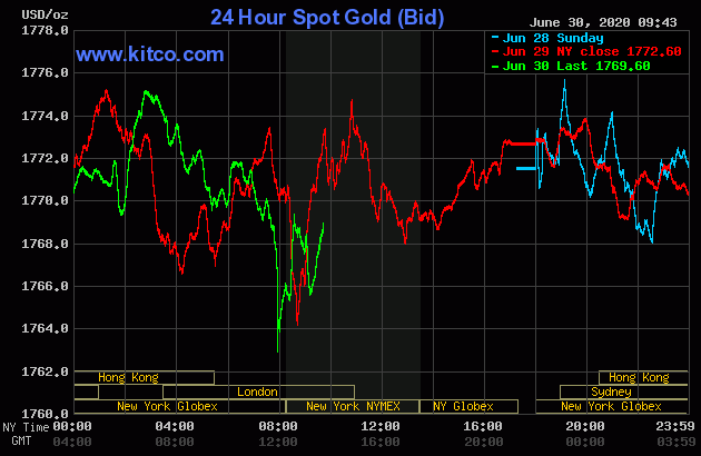 طلا از صبح امروز دچار نوسان شده است. ابتدا قیمت طلا افزایش یافت به 1776 دلار رسید و پس از آن روندی کاهشی را شروع کرد و قیمت آن رو به کاهش نهاد. در لحظه نوشته شدن این متن هر انس طلای جهانی 1765 دلار می باشد که نسبت روز گذشته 7 دلار کاهش داشته است.