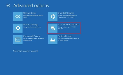بعد گزینه(UEFI Firmware settings) انتخاب کنید.
