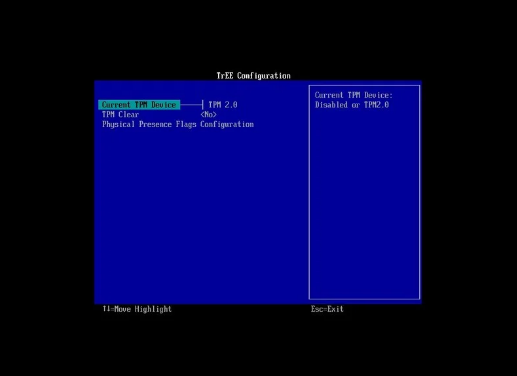 در این مرحله شما باید صفحه تنظیمات امنیتی را باز کنید.(تنظیمات UEFI معمولاً در هر سازنده و حتی در هر مدل رایانه متفاوت بوده. در نتیجه، ممکن است لازم باشد برای پیدا کردن تنظیمات امنیتی، وب سایت پشتیبانی سازنده خود را برای جزئیات بیشتر بررسی کنید.) گزینه Trusted Platform Module (TPM) را انتخاب کرده و Enter را فشار دهید.