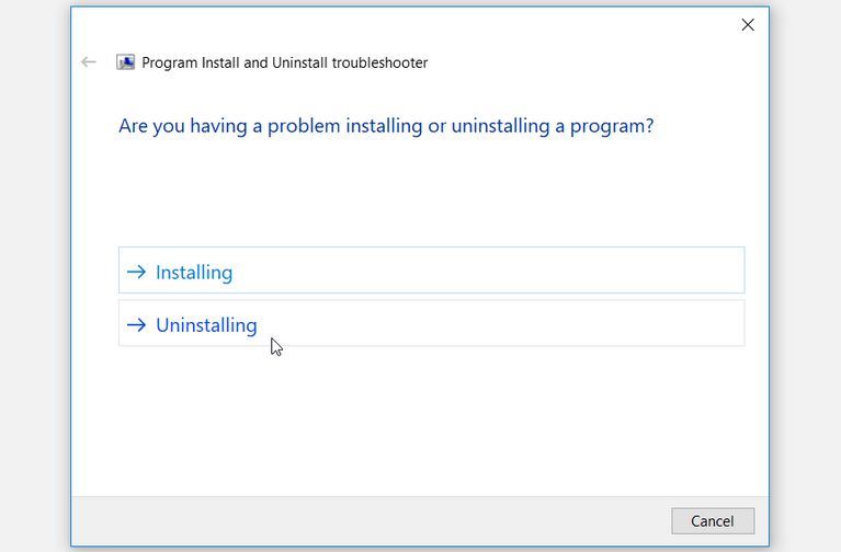 ۵. از عیبیاب نصب و حذف نصب ویندوز استفاده کنید