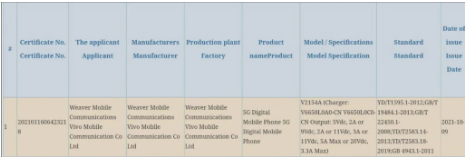 براساس گزارش ها، گوشی هوشمند ویوو V2154A در 3C با شارژ سریع 66 وات ظاهر می شود.