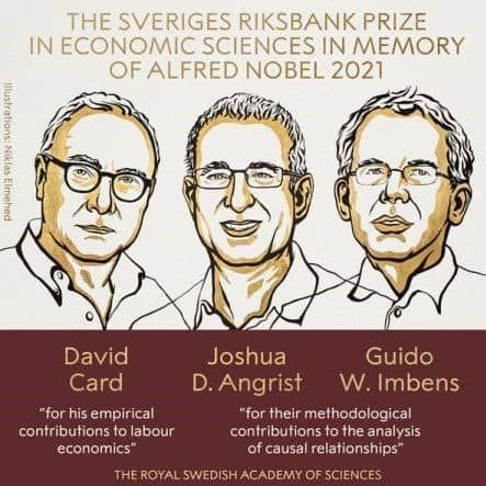دیوید کارد به دلیل تحقیقات خود در زمینه اقتصاد کار و جشوا آنگریست و گایدو ایمبنز به دلیل کمک های روش شناسانه خود برای تجزیه و تحلیل روابط علّی حائز جایزه نوبل اقتصاد شده اند.
