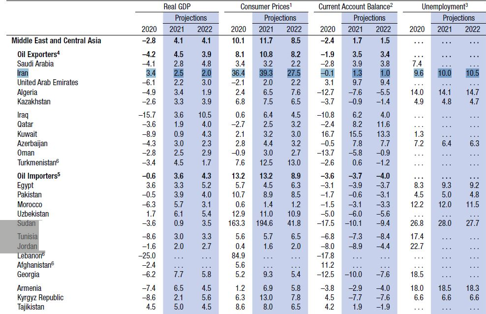 پیشبینی صندوق بیالمللی پول از اقتصاد ایران در سال 2021