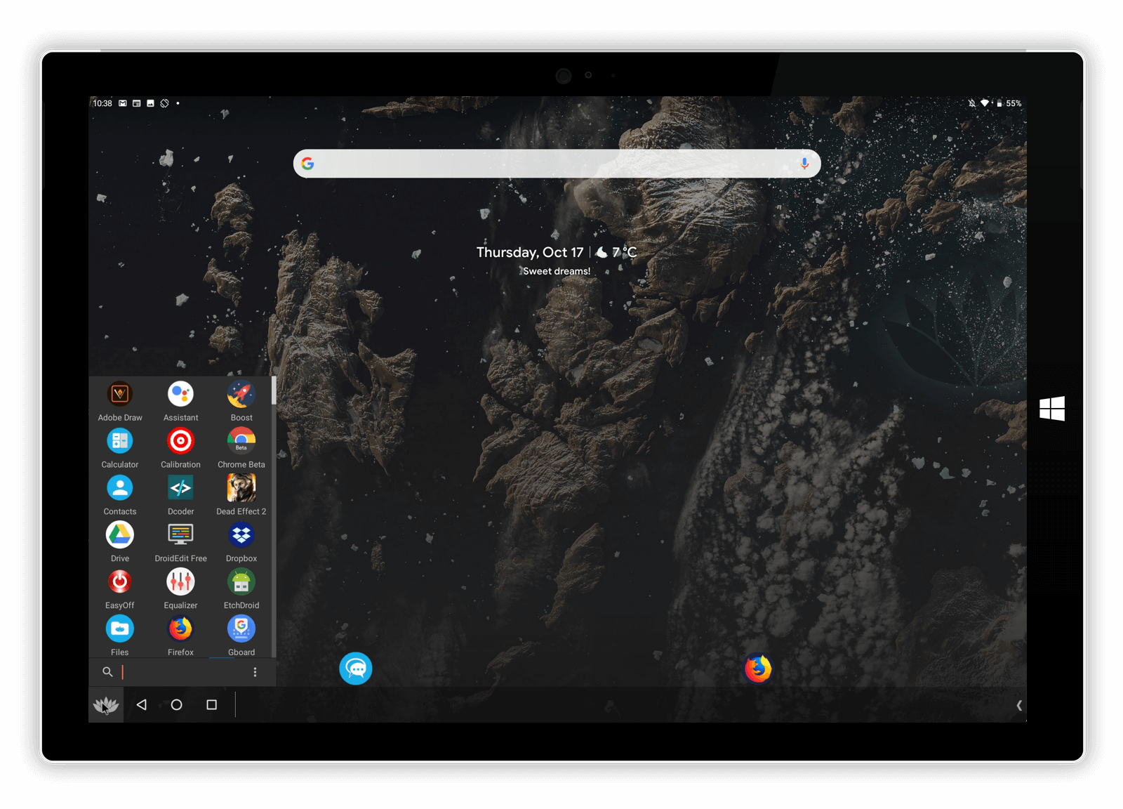 اکنون بار دیگر روی آیکن موجود در دسکتاپ منو کلیک کنید. کمی بعد Anbox اجرا خواهید شد. این باگ بیشتر در توزیعهای مبتنی بر نسخه ۱۶.۰۴ اوبونتو دیده شده است و به احتمال زیاد کاربران نسخههای جدیدتر با آن مواجه نخواهند شد.
