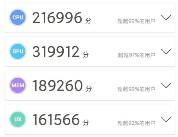 گوشی گیمینگ مذکور در بنچمارک مربوطه در آزمون CPU موفق به کسب امتیاز ۲۱۶,۹۹۶، در آزمون GPU موفق به کسب امتیاز ۳۱۹,۹۱۲، در آزمون حافظه نیز امتیاز ۱۸۹,۲۶۰ و در آزمون UX نیز موفق به کسب امتیاز ۱۶۱,۵۶۶ شده است. امتیاز نهایی دستگاه مذکور با در نظر گرفتن این امتیازها، امتیاز چشمگیر ۸۸۷,۷۳۴ در آنتوتو شده است.