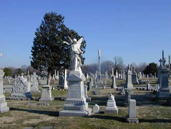 آرامگاه شماره یک سنت لوئیس که در سالهای 1780 در ایالت نیو اورلئان آمریکا احداث شده قدیمی ترین و ترسناکترین قبرستان این ایالت بوده و هنوز هم همه ساله افراد زیادی در آن به خاک سپرده میشوند. به دلیل سفره آبی که در زیر این قبرستان وجود دارد و نزدیک به سطح زمین است، مردگان در دخمهها و یا طاقهایی بر روی سطح زمین قرار داده میشوند که فضای ترسناکی را به وجود میآورد. معمولا بازدیدکنندگان ترجیح میدهند که به تنهایی وارد این آرامگاه نشوند.