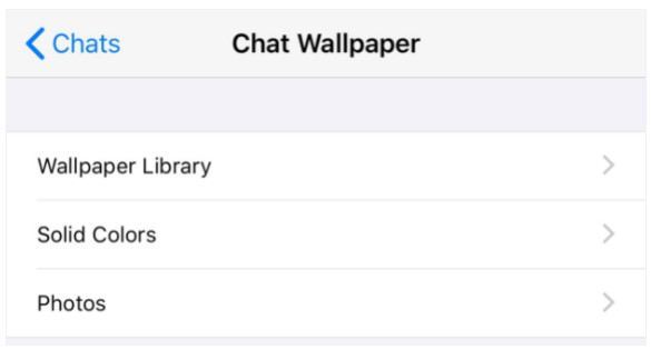 برای انجام این کار به WhatsApp بروید و روی نماد setting کلیک کنید. از صفحه منوی بعدی که ظاهر می شود، Chats را انتخاب و سپس روی Chat Wallpaper ضربه بزنید. سپس گزینه chang را انتخاب کنید.