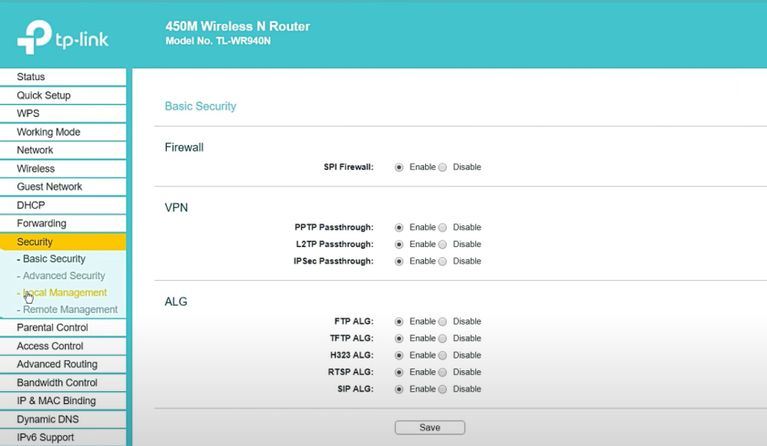 به بخش Security در صفحه روتر بروید و از روشن بودن فایروال مطمئن شوید. در این صفحه ویژگیهای امنیتی دیگری هم وجود دارند که باید فعال باقی بمانند.