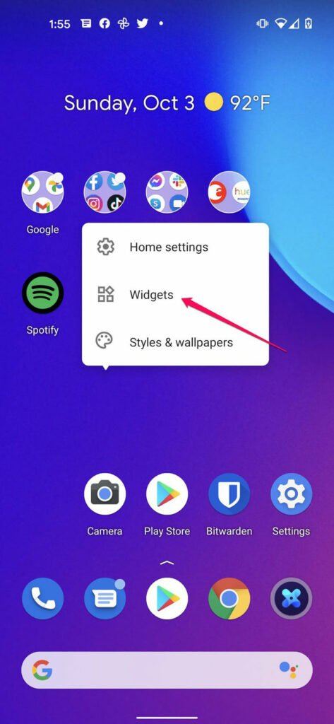 روی صفحهی هوم دستگاه خود یک فضای خالی پیدا کنید و برای مدتی انگشت خود را روی آن نگه دارید و با ظاهر شدن منوی جدید، به بخش ویجتها مراجعه کنید.