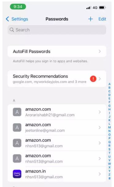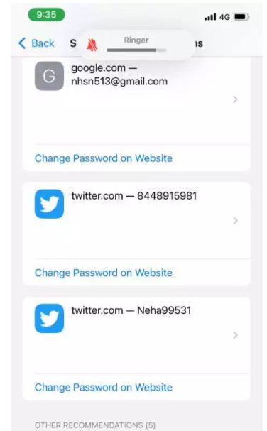 برای مشاهده گذرواژه ای که حساب آن مشکل داشته یا در نشت داده ظاهر شده است، روی توصیه های امنیتی ضربه بزنید. این بخش همچنین در مورد رمز عبور ضعیف و احتمال هک شدن آن به شما اطلاع می دهد.