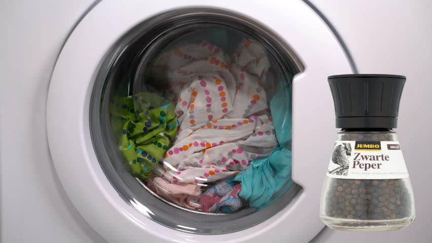 نحوه عملکرد: لباس های تغییر رنگ یافته خود را در ماشین لباسشویی بگذارید و مواد شوینده معمولی خود را اضافه کنید. سپس، یک قاشق چای خوری فلفل سیاه را به ماشین خود اضافه کنید و لباس ها را روی تنظیم اب سرد بشویید؛ سپس خواهید دید که لباسها با رنگ اصلی بیرون می آیند.