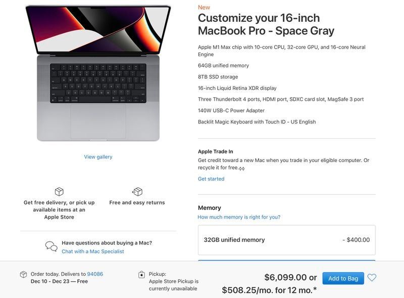 اپل از نسل جدید مک‌بوک پرو در مدل‌های ۱۴ و ۱۶ اینچی با تراشه M1 پرو و M1 مکس رونمایی کرد و آن‌ها را با قیمت پایه ۱۹۹۹ دلار به بازار می‌فرستد. ولی قیمت بالاترین پیکربندی این لپ‌تاپ بسیار بیشتر از انتظارات است و به ۶۰۹۹ دلار می‌رسد.