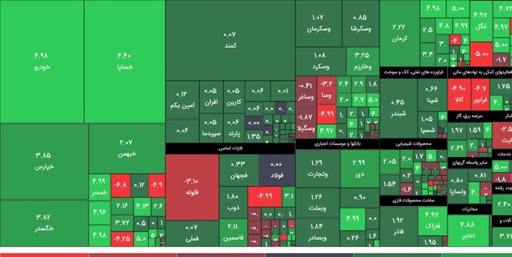 به طور کلی ۲۸۳ نماد بورسی مثبت و ۸۹ نماد بورسی منفی بودند که از میان آنها سرمایه گذاری غدیر، فولاد مبارکه اصفهان، ملی صنایع مس ایران، ایران خودرو، بانک ملت، مخابرات ایران و پتروشیمی خارک نسبت به سایر نمادها بیشترین تاثیر مثبت را روی بورس گذاشتند.