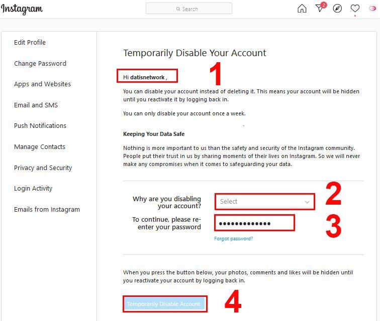 غیرفعال کردن اینستاگرام بدون از دست دادن حساب