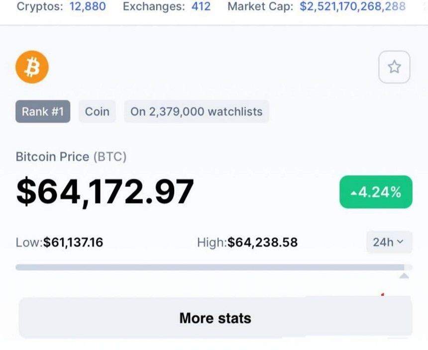 بیتکوین در ادامه رکوردزنی های خود از ۶۴هزار دلار عبور کرد.