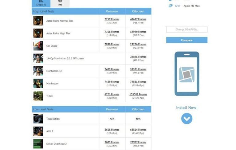 به گزارش موبوایران، ادعاهای بزرگ اپل در مورد قابلیت‌های عملکردی دو تراشه‌‌ی قدرتمند M1 پرو و مکس اپل با انتشار بنچمارک‌های بیشتر از آن‌ها تایید می‌شود. اینبار بنچمارک محبوب GFXBench، امتیازات تراشه‌ی M1 مکس را منتشر کرده که براساس آن عملکرد این پردازنده حدود ۲۵ درصد سریع‌تر از نسخه‌ی موبایل کارت‌ گرافیک Nvidia RTX 3070 است. نتیجه‌ی این مقایسه با نمودار‌های منتشر شده اپل مطابقت دارد.