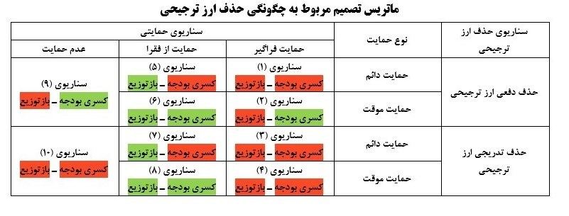 رویکرد اول، حذف دفعی یا تدریجی ارز 4200 تومانی می باشد. چالش دوم، انتخاب میان حمایت فراگیر یا حمایت از اقشار ضعیف یا عدم حمایت است. سومین رویکرد نیز تصمیم گیری درباره دائمی یا موقتی بودن این سیاست حمایتی میباشد.