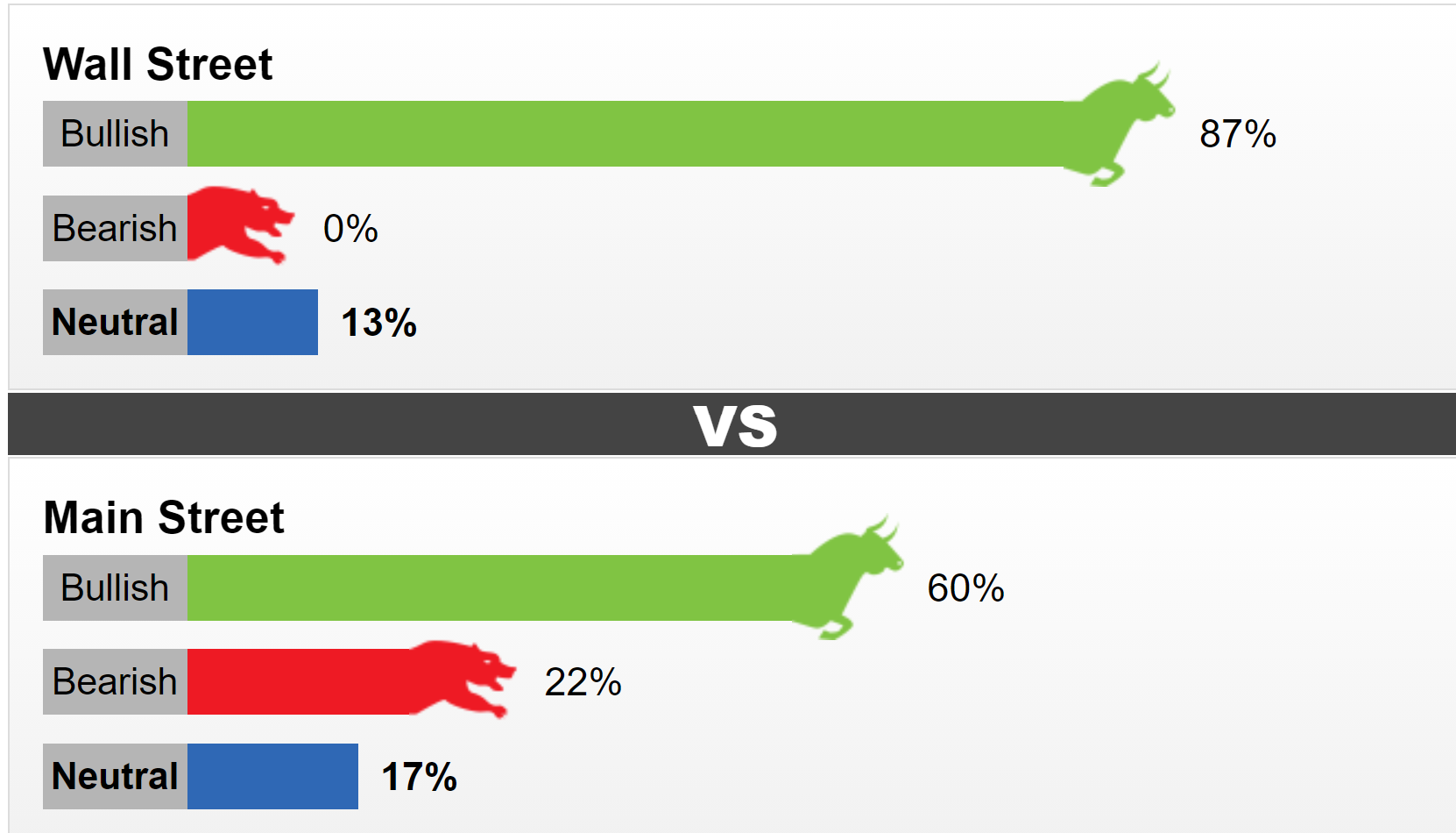 این هفته 15 تحلیلگر وال استریت در نظرسنجی طلا کیتکو نیوز شرکت کردند. 13 نفر یا 87 درصد، خواستار افزایش قیمت طلا بودند. دو تحلیلگر یا 13 درصد در کوتاه مدت نسبت به طلا بی طرف بودند و هیچ تحلیلی در مورد طلا نزولی نبود.
