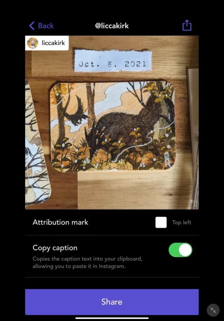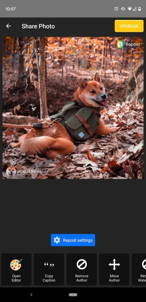 Repost for Instagram به شما اجازه میدهد رنگ و مکان واترمارک تصاویر را هم تغییر دهید. اما نمیتوانید خود پست اصلی را تغییر دهید، در واقع تنها امکانی که برای آن در اختیار دارید ریپست کردن است.