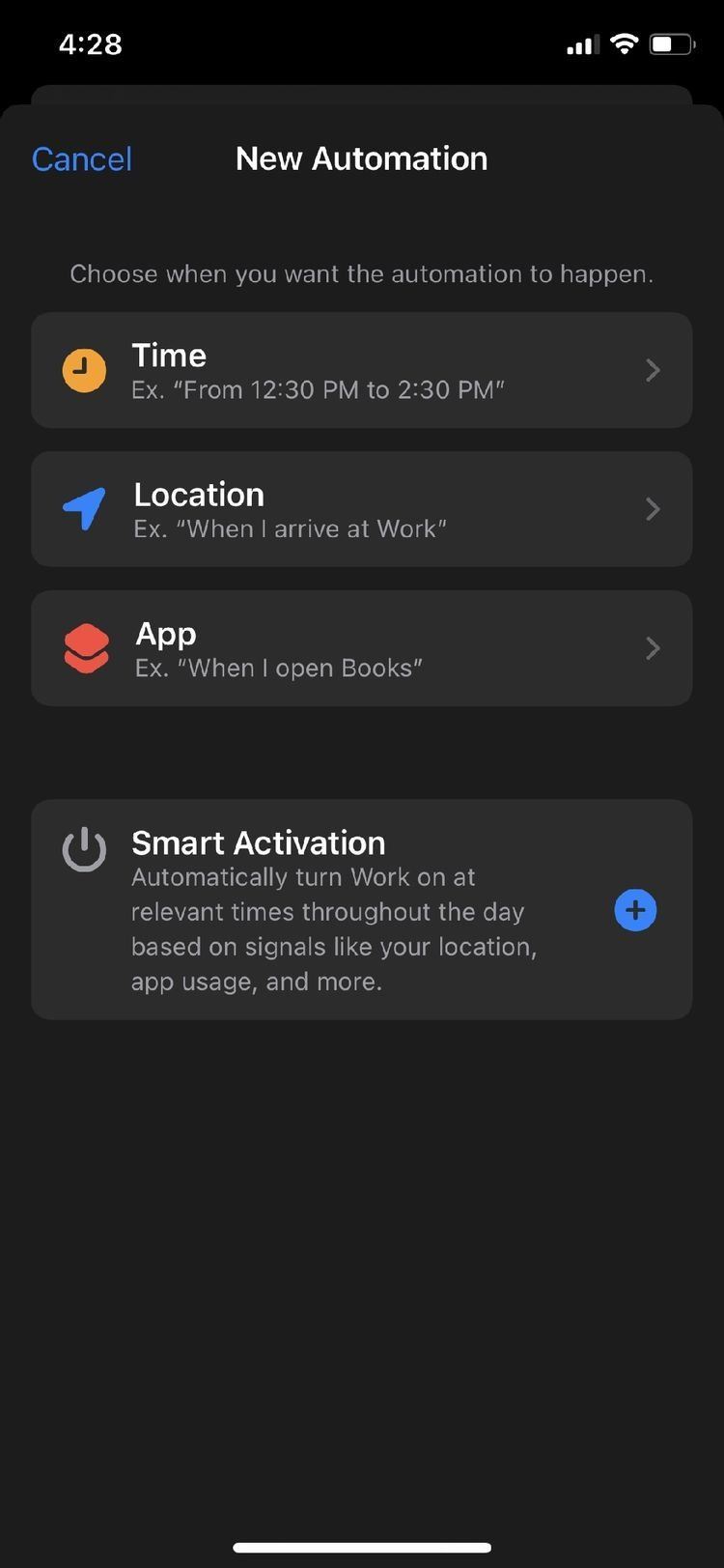 باید به این موضوع توجه داشته باشید که با استفاده از Smart Activation، به آیفون اجازه می‌دهید که حالت فوکوس را با توجه به سیگنال‌هایی مانند موقعیت، استفاده از اپ و موارد دیگر فعال کند. از آنجایی که این ویژگی فعالیت‌های شما را تخمین می‌زند، احتمالا دقت کمتری نسبت به دیگر روش‌های خودکارسازی دارد.