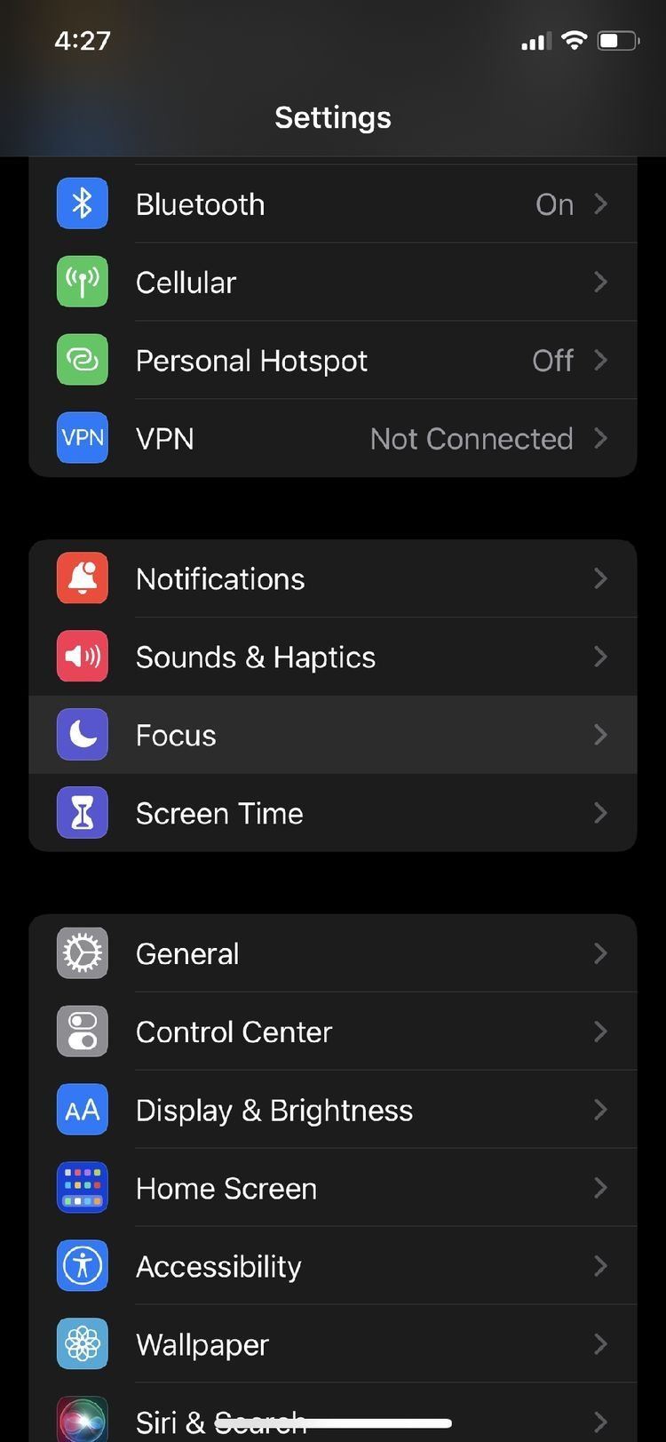 شاید به دنبال خودکارسازی پروفایل‌های فوکوس نباشید و بخواهید به صورت دستی آن‌ها را فعال یا غیرفعال کنید. برای فعالسازی دستی حالت‌های مختلف فوکوس در آیفون خود، مراحل زیر را انجام دهید: