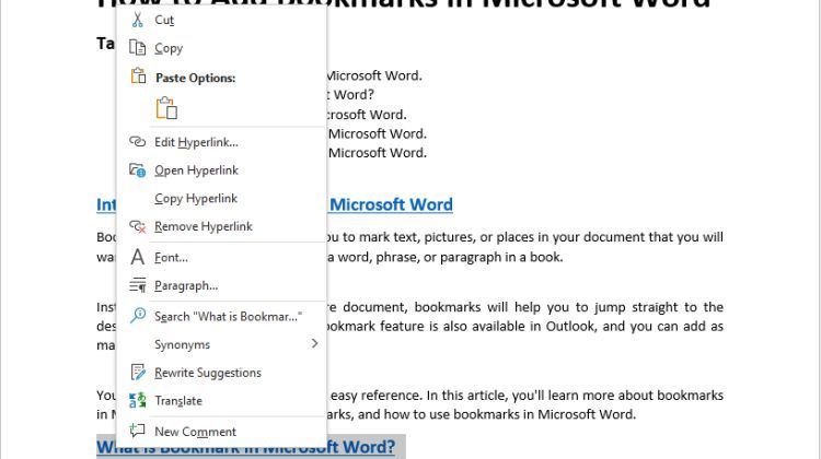 یک بوکمارک در مایکروسافت ورد با هایپرلینکها کار میکند و به شما اجازه میدهد که به هرجای سند که میخواهید بروید. این ویژگی شبیه یک لینک داخلی میان بخشهای مختلف سند ورد کار میکند.