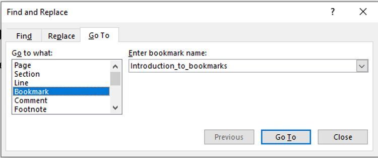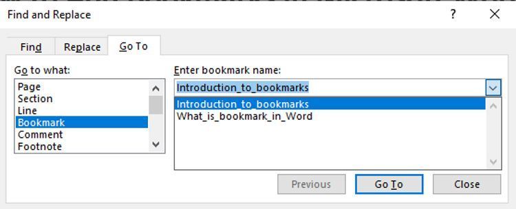 اگر چندین بوکمارک به سند ورد اضافه کردهاید، قبل از اینکه روی گزینه Go To در پایین پنجره کلیک کنید، در منوی کشویی Enter bookmark name، نام بوکمارک مدنظرتان را انتخاب کنید.