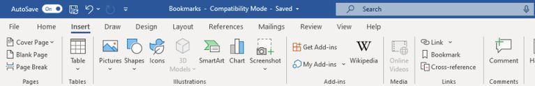 یک سند ورد را با استفاده از اپ دسکتاپ باز کرده و سپس به بخش مدنظرتان برای بوکمارک بروید. حالا روی تب Insert در نوار بالایی کلیک کنید و سپس گزینه Bookmark را انتخاب کنید.