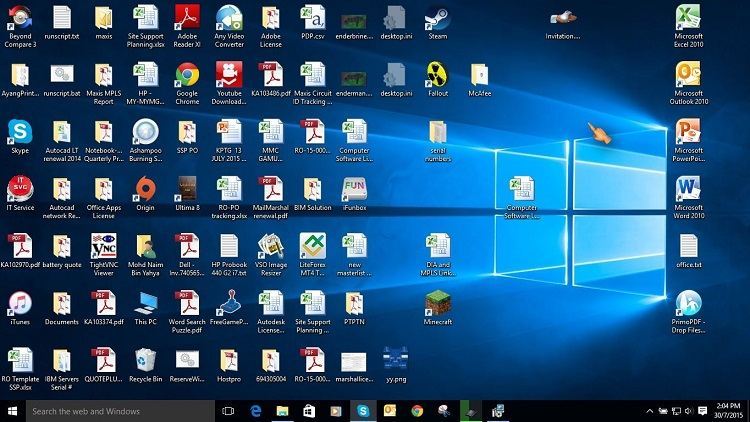 حتی پس از حذف داده های غیرضروری، یک دسکتاپ نامرتب می تواند همچنان موجب سردرگمی شده و ارائه عملکرد بهینه را دشوارتر کند. افراد بسیاری از دسکتاپ ویندوز به عنوان یک فضای ذخیرهسازی موقت استفاده می کنند که به پراکنده شدن انواع مختلف فایل ها روی آن منجر می شود.