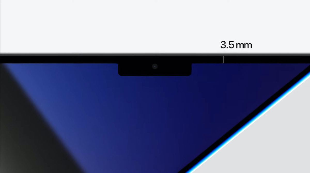 مدلهای جدید مکبوک پرو ۱۴ و ۱۶ اینچی نسبت به مدلهای قبلی حاشیه بسیار کمتری دارند. اپل میگوید حاشیه نمایشگر در سمت چپ و راست صفحه ۲۴ درصد کمتر شده و اندازه آن فقط ۳.۵ میلیمتر است. حاشیه بالای صفحه هم حالا به لطف ناچ ۶۰ درصد باریکتر شده است.