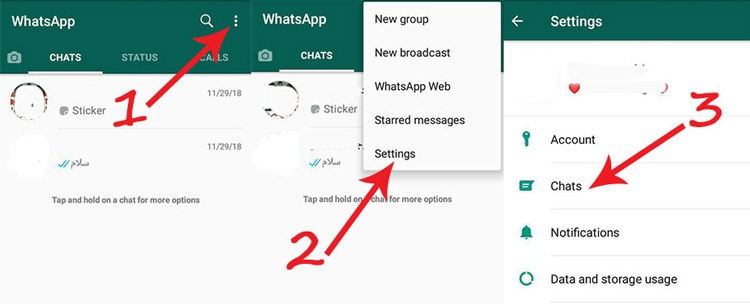 ۲. گزینه Chats یا گفتگو‌ها را انتخاب کنید