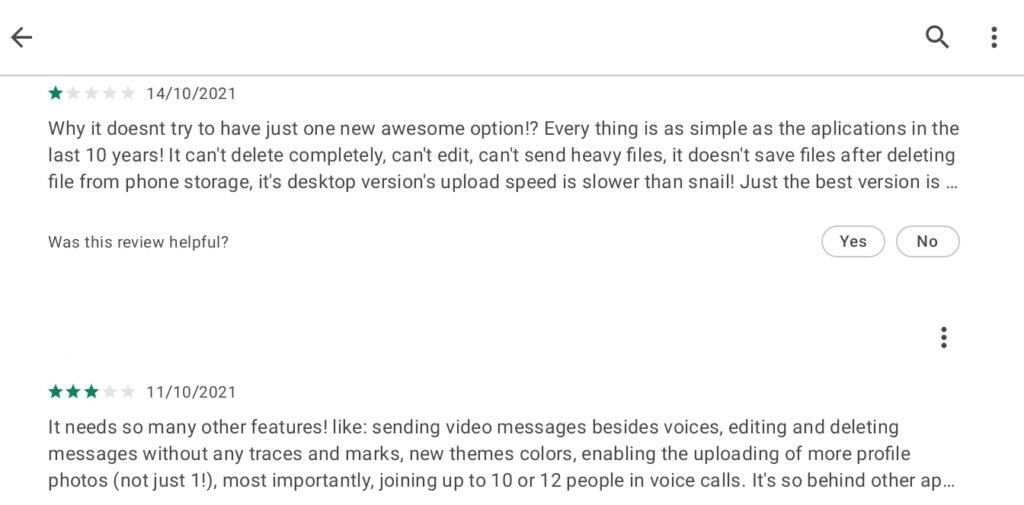 در برنامههایی که نظرات کوتاه و مثبت زیاد است، احتمالا یک ربات چنین نظراتی را ثبت کرده است و در نتیجه این برنامه میتواند ناامن باشد. همچنین اصولا کلاهبرداران وقت خود را صرف پاسخگویی به نظرات مردم نمیکنند؛ پس اگر در یک برنامه، مسئولین اپلیکیشن به نظرات مردم پاسخ دادند (مخصوصا اگر نظرات منفی باشند)، میتوانید به آنها بیشتر اعتماد کنید.