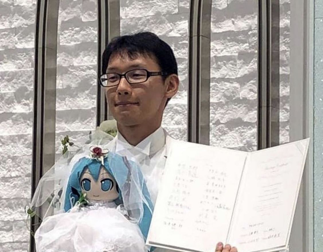 مرد جوان ژاپنی هم که از خانمها دل خوشی نداشته با عروسک یک کاراکتر معروف انیمیشنی که نامش هاتسون میگو است ازدواج کرده !