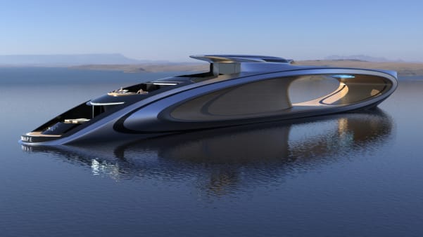 قایق تفریحی مفهومی The Shape با قیمت 80 میلیون دلار دارای حفره ای عمیق در بدنه خود بوده و به طور کامل به انرژی پاک وابسته است.