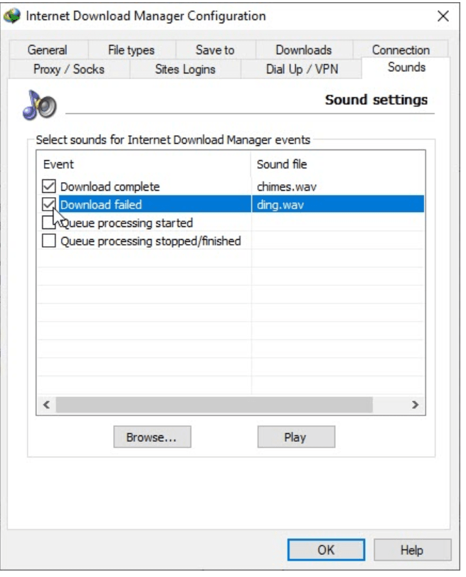 از ویژگیهای جالب و هیجانانگیز اینترنت دانلود منیجر این است که میتواند برای ایونتهای مختلف دانلود، صداهای مختلف و جذاب پخش کند. برای فعالشدن این آپشن باید مراحل زیر را به ترتیب اجرا کنید: