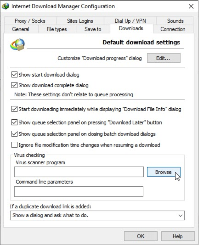خیلی از اوقات ممکن است که یک فایل دانلودی حاوی ویروس و یا بدافزار باشد تا بتوانند به سیستم شما دسترسی داشتهباشند و یا آن را آلوده کنند. اینترنت دانلود منیجر میتواند به آنتیویروس روی دستگاه شما وصل شود و فایلهای دانلودی را به صورت خودکار اسکن نماید. این راه امنترین راه برای جلوگیری از ورود ویروسها از دانلودهای شما است. با این کار شما به بهترین نحو ممکن از دستگاه خود در مقابل تهدیدات احتمالی دفاع میکنید. برای اتصال آنتیویروس و اینترنت دانلود منیجر باید مراحل زیر را طی کنید: