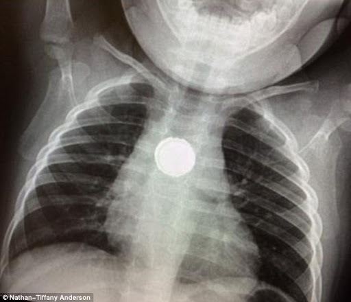 یک کودک دو ساله عربستانی یک باتری دکمه ای را بلعید و به مدت هفت روز با وجود باتری در معده اش زنده ماند.
