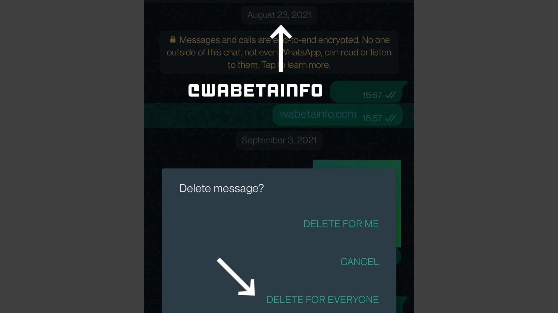 در اسکرین شات به اشتراک گذاشته شده توسط افشاگر معروف WABetaInfo، این نکته وجود قابل مشاهده است که یک کاربر در حال پاک کردن پیام خود در یک چت دو طرفه است این در حالی است که پیام مربوط به سه ماه پیش است و چت پشت سر تاریخ ۲۳ آگوست را نشان میدهد. این زمان بیشتر از محدودیت زمانی فعلی است که واتساپ در اختیار دارد.