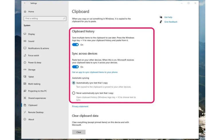 در صفحهی جدیدی که برایتان به نمایش در میآید، عبارت Sync clipboard history to the cloud را انتخاب کنید.