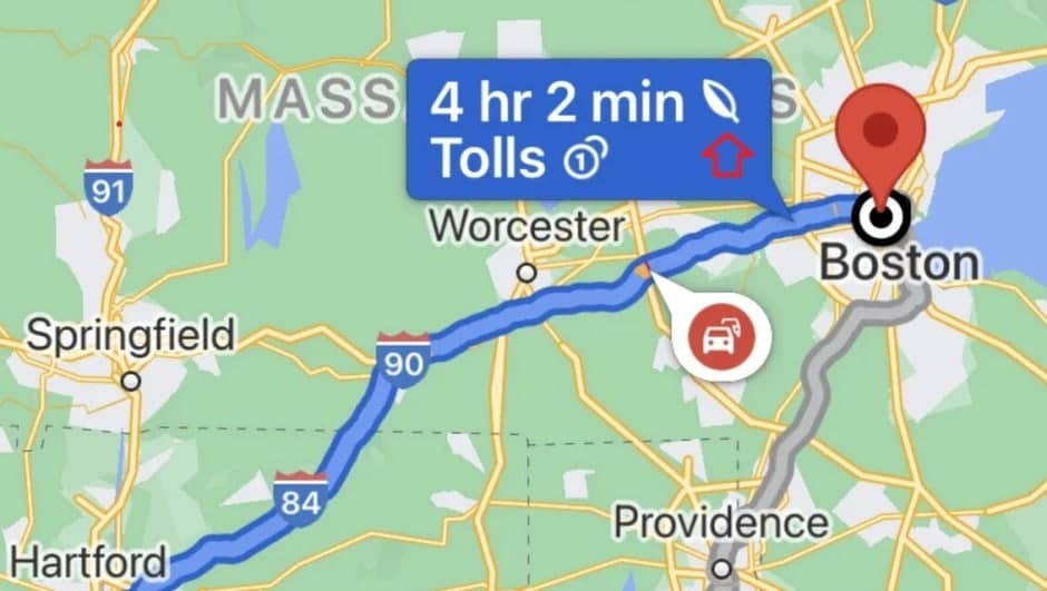 اگر ویژگی جدید گوگل مپس را در گوشی اندروید یا iOS خود داشته باید، آیکون برگ سفیدی را در کنار «زمان تخمینی برای رسیدن به مقصد» (تصویر بالا) مشاهده خواهید کرد.