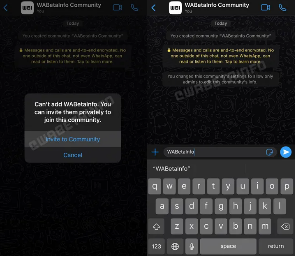 انتظار میرود مدیران بتوانند از طریق پیوند انجمن، کاربران جدیدی را به گروهای خود دعوت کرده و سپس شروع به ارسال پیام کنند. WABetaInfo درباره امنیت چت خاطرنشان کرد که پیامهای ارسال شده به گروه رمزگذاری میشوند. همچنین به نظر میرسد که این قابلیت جدید باعث تغییر چیدمان داخلی گروههای واتساپی شود.