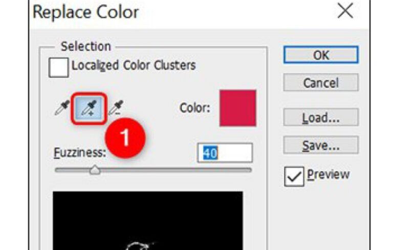در پنجرهی Replace Color، روی آیکون قطرهچکان با علامت مثبت (+) کلیک کنید. سپس در پایین، روی قسمت رنگ «Result» کلیک کنید تا رنگ مورد نظر را برای شی خود انتخاب کنید.