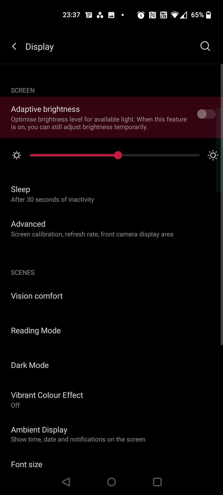 قابلیت تنظیم خودکار روشنایی یا روشنایی تطبیقی، بر اساس دادههایی که از سنسور نور بدست میآورد، بطور مداوم میزان روشنایی صفحه نمایش گوشی را تغییر میدهد. اما در این میان شاید یک آپدیت نرم افزاری یا مشکل سخت افزاری، در عملکرد چنین سیستمی مشکل ایجاد کند و سوسو زدن نمایشگر دستگاه را در پی داشته باشد. بنابراین میتوانید آن را غیرفعال کنید.