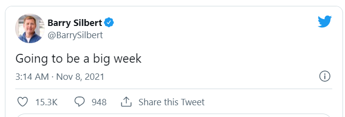 از طرفی بسیاری عقیده دارند رشد بازار به دلیل توئیت بری سیلبرت، مدیرعامل گروه ارز دیجیتال است. او در توئیتر خود نوشت: هفته بزرگی برای بازار رمزارزها در پیش است. این توئیت به شدت در بازار رمزارزها دیده شد و احتمالا خریداران را تقویت کرده است. هشدارهای سیلبرت در رابطه با بازار رمزارزها را نباید نادیده گرفت چون او قبلا ریزش دوجکوین را پیشبینی کرده بود و شرکت سرمایهگذاری او حالا بیش از ۱۰ میلیارد دلار دارایی در گردش دارد.