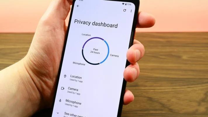 داشبورد حریم خصوصی (Privacy Dashboard) در مرکز توجه گوگل در رویداد I/O ۲۰۲۱ قرار داشت و عملکردش دقیقا مانند نامش است. شما میتوانید از طریق تنظیمات به این داشبورد دسترسی پیدا کنید و ببینید کدام اپها در چه زمانی و به چه میزان از مجوزها استفاده میکنند. در صفحه اصلی یک نمودار دایرهای وجود دارد که میزان استفاده از مجوزها را نشان میدهد. شما میتوانید به جزئیات بیشتری در این داشبورد دست پیدا کنید.