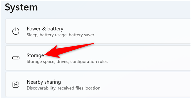 در صفحهای که باز میشود به سمت پایین بروید تا بهگزینهی Storage برسید.