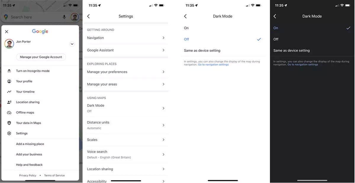 نحوه فعالکردن حالت تاریک در نسخه iOS گوگل مپس