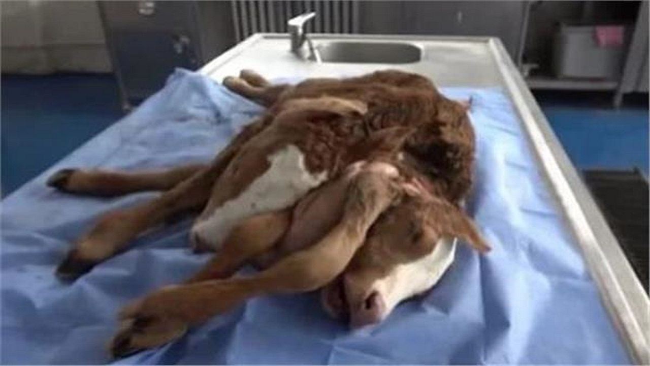 تولد گوساله ۶ پا که دو سر و دُم دارد!