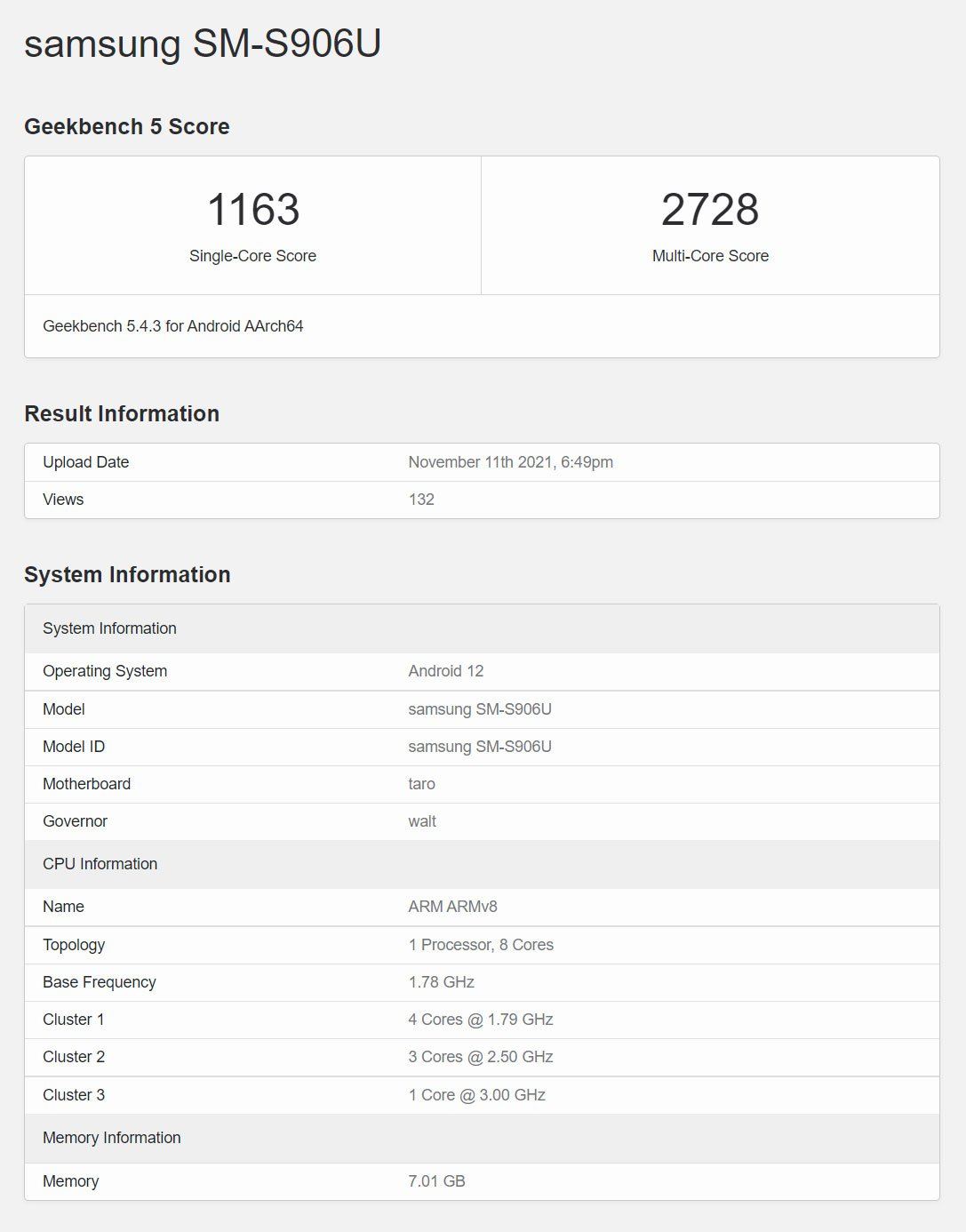 البته با توجه به اینکه این گوشیها هنوز راهی بازار نشدهاند، بهینهسازی نرمافزاری و سختافزاری هنوز نهایی نشده و به همین خاطر چنین تناقضهایی کاملا طبیعی محسوب میشود. طبق اعلام کوالکام، چیپست اسنپدراگون ۸۹۸ در تاریخ ۳۰ نوامبر (۹ آذر) رسما معرفی خواهد شد. مدتی قبل هم گلکسی S22 پلاس مجهز به اگزینوس ۲۲۰۰ در گیکبنچ دیده شد ولی با توجه به اینکه در بنچمارک موردنظر حالت صرفهجویی در مصرف باتری فعال بوده، نمیتوانیم نتایج به دست آمده را با یکدیگر مقایسه کنیم.