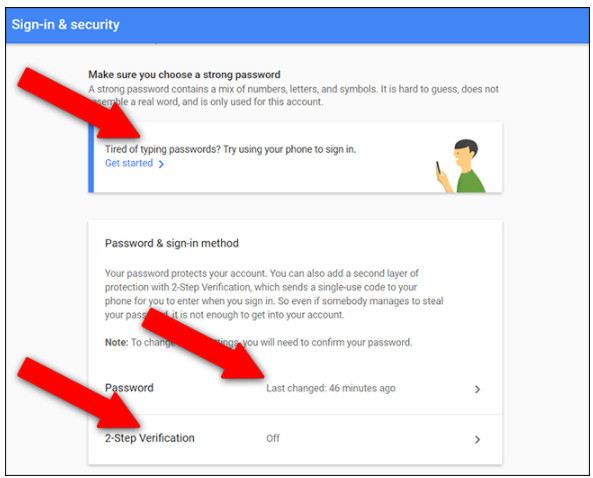 در این صفحه روی Signing in to Google کلیک کنید. در اینجا می‌توانید ایمیل و شماره تلفن بازیابی خود را دوباره بررسی کنید و ببینید آخرین بار کدام دستگاه‌ها و از چه مکان‌هایی به حساب شما دسترسی داشته‌اند. اگر موردی ناموفق به نظر می رسد، ممکن است شخصی سعی در دسترسی به حساب شما داشته باشد.